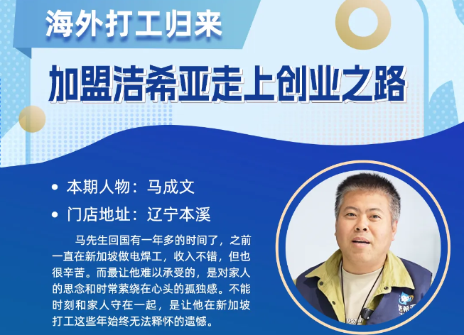 海外打工歸來,加盟潔希亞走上創(chuàng)業之路